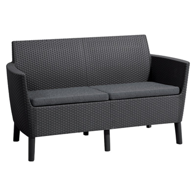 Forma moderne dhe e thjeshtë, komoditeti dhe cilësia e lartë janë avantazhet kryesore të divanit Salemo me 2 vende. Struktura që imiton ratanin i rrit vlerat estetike të produktit. Mobiliet mund të pastrohen dhe të montohen me lehtësi dhe janë rezistente ndaj kushteve të vështira të motit. Përmasat: 133 x 67 x 76 cm Dimensionet e paketimit: 120 x 80 x 30 cm Transporti: Tiranë-600 Lekë / Rrethe-800 Lekë