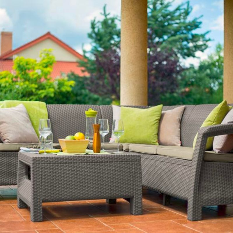 Si këndi ashtu edhe tavolina janë prej plastike të cilësisë së lartë, gjë që i bën ato të qëndrueshme dhe rezistente ndaj kushteve të ndryshme të motit.