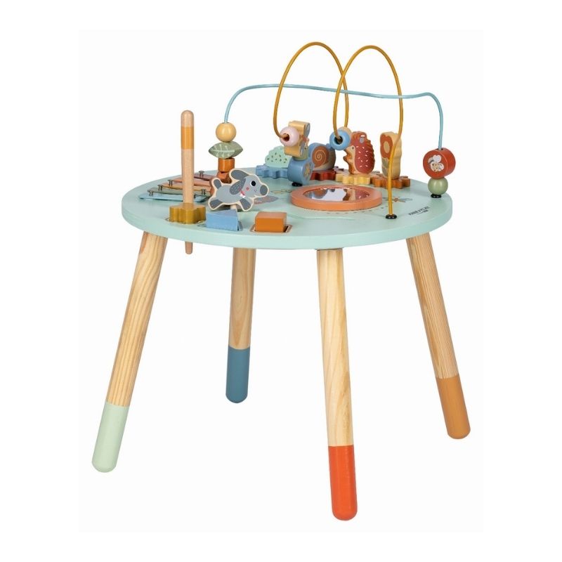 *Tavolina është e pajisur me elementë të ndryshëm që inkurajojnë dhe përmirësojnë aftësitë motorike të fëmijës suaj.
