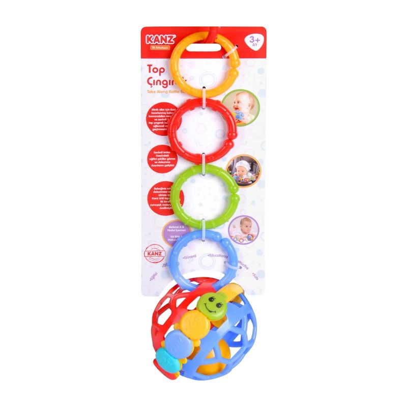 *I projektuar posaçërisht për duart e vogla, topi shumëngjyrësh me zile është i lehtë për t’u kapur dhe krijon tinguj argëtues, ndërsa unazat e fiksuara parandalojnë rënien e lodrës në tokë, duke ndihmuar në ruajtjen e higjienës.